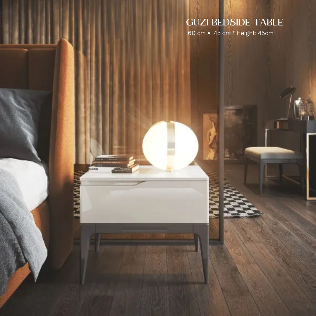 The Guzi Bedside Table, designed for modern spaces, provides an ideal choice for your living area. Each of our tables can be tailored to your preferences in terms of size, material, and finish.